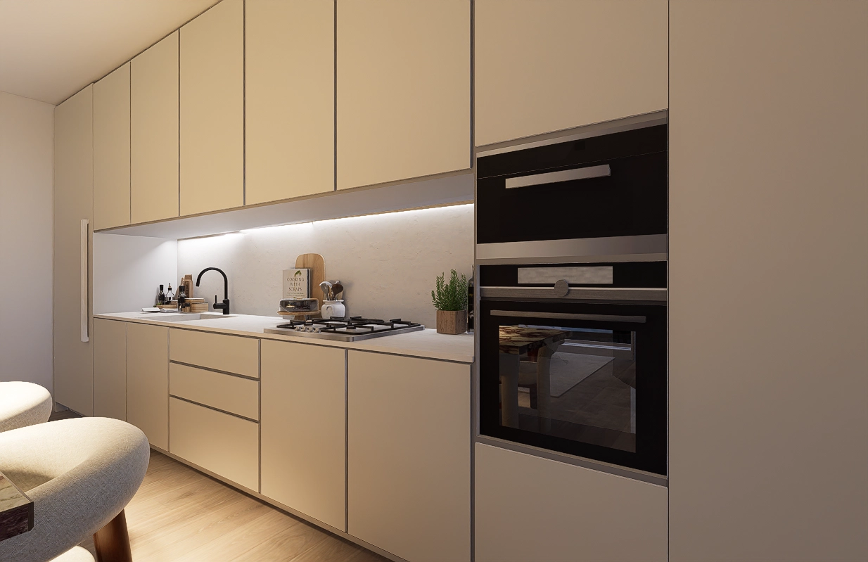 Cjelokupni interijer osmišljen je kao dugoročno rješenje koje spaja suvremeni dizajn s bezvremenskim vrijednostima. Kroz kontinuitet u paleti boja, kvalitetnim materijalima i jasnoj funkcionalnoj logici, ovaj prostor predstavlja spoj estetike i svakodnevne praktičnosti, rezultirajući prostorom koji istovremeno djeluje profinjeno, ugodno i trajno.