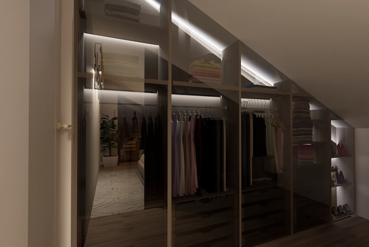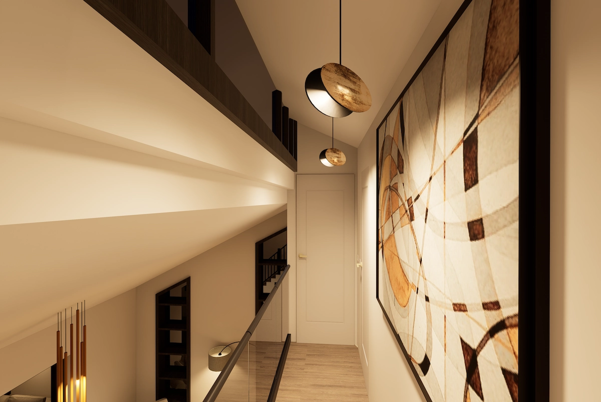 U ovom projektu kuće u Zagrebu, glavni naglasak se stavio na ostvarivanje osjećaja toplog i intimnog utočišta suvremene obitelji. Topli tonovi zidova i drva stvaraju meku pozadinu na kojoj igra prirodnog i umjetnog osvjetljenja dolazi do punog izražaja - svaka refleksija na staklu i sjena uzduž linija zida stvaraju osjećaj mira, ali i dinamike.