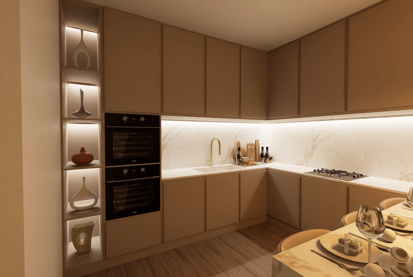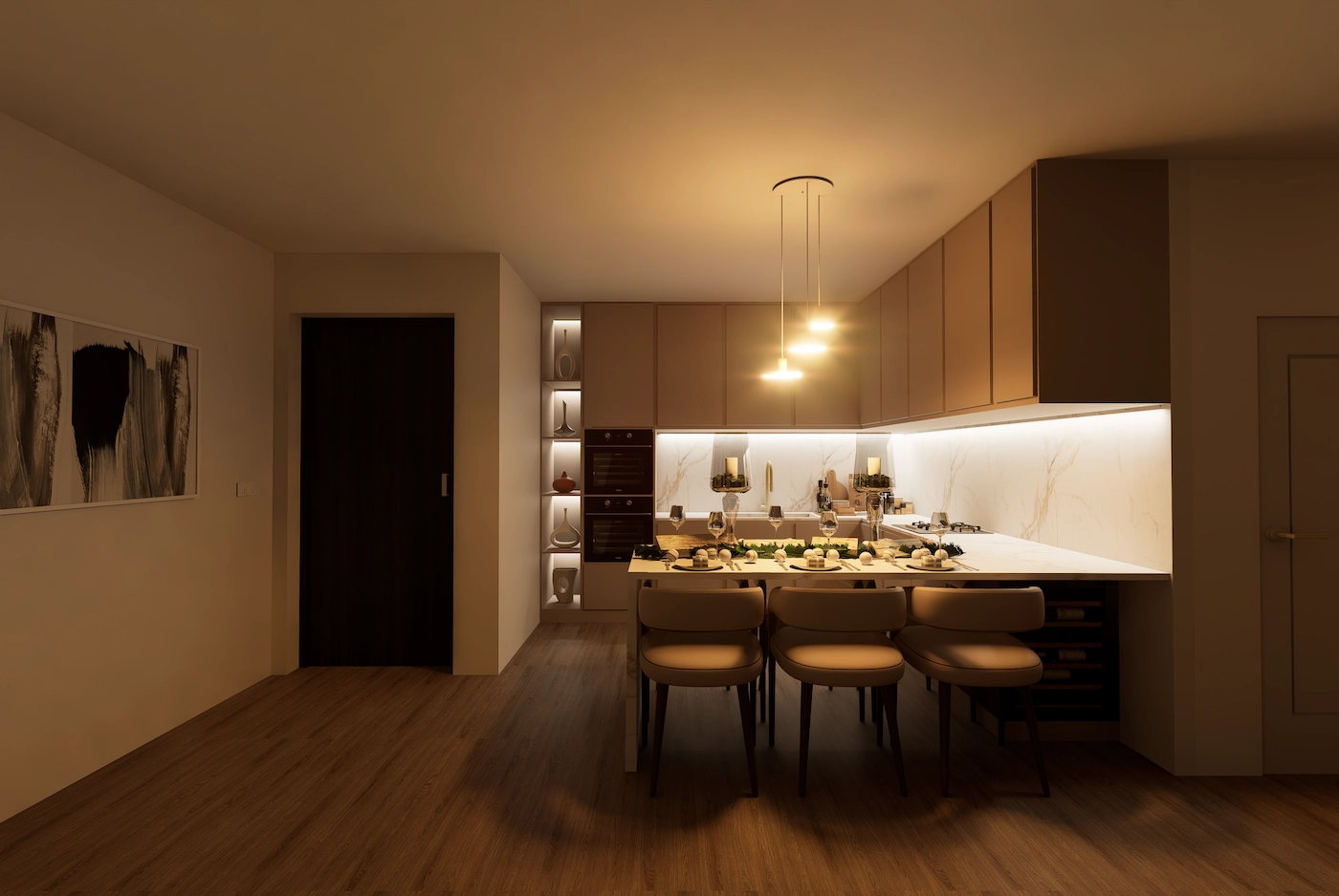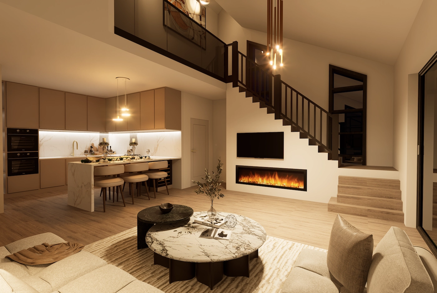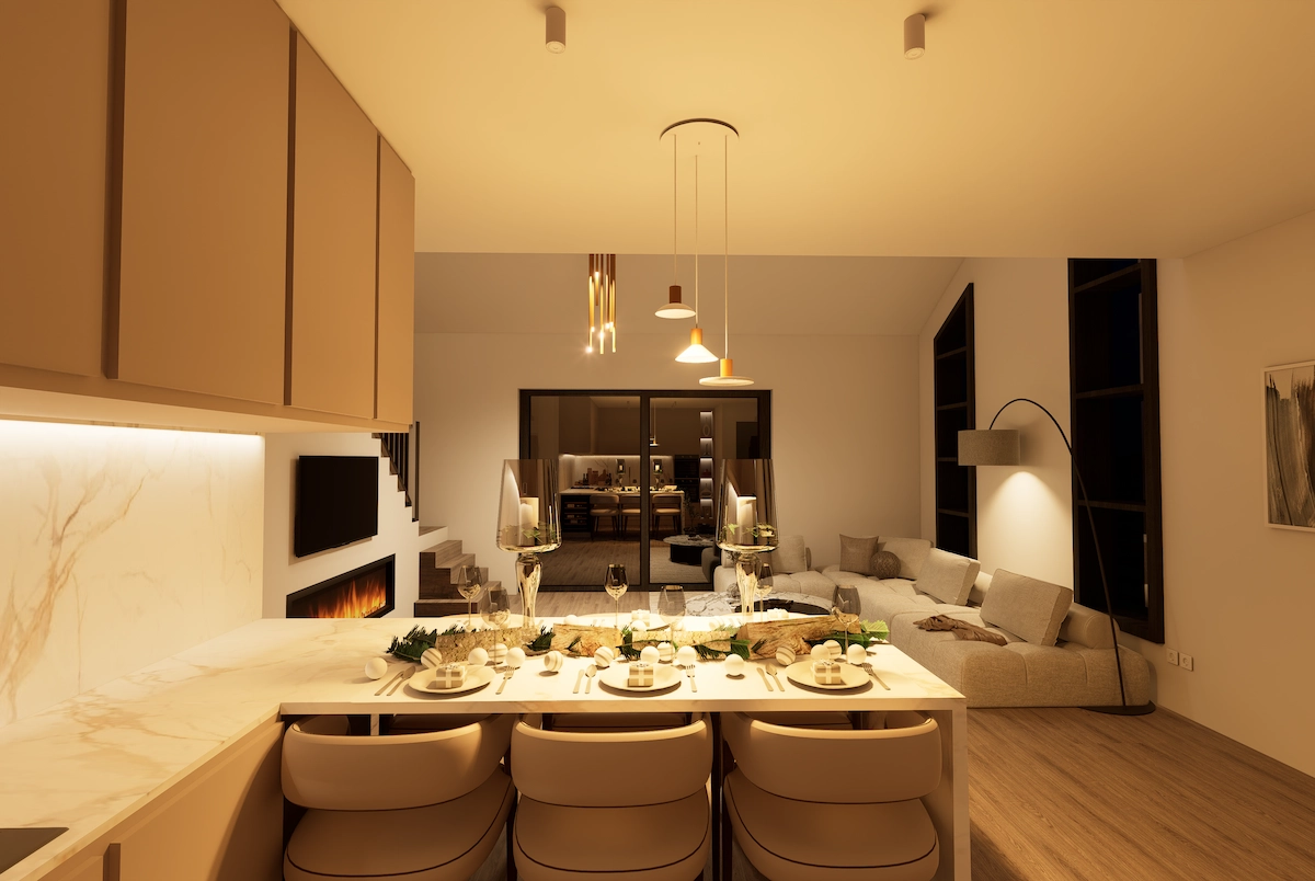 Rezultat je suvremeni interijer koji istovremeno odiše profinjenošću i toplinom - prostor u kojem promišljeni dizajn i atmosfera prostora dišu u istom ritmu.
