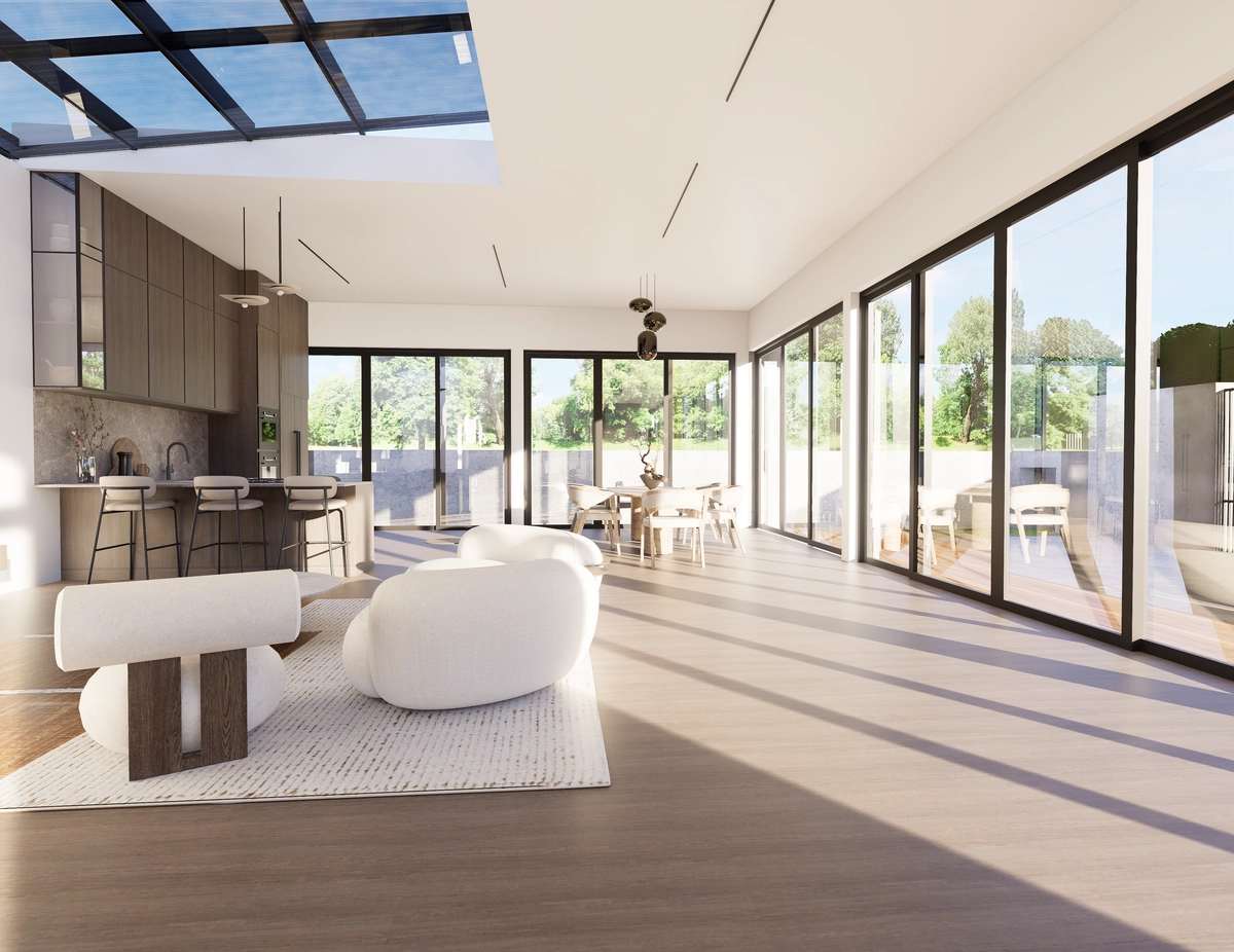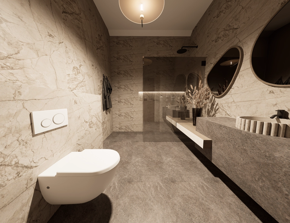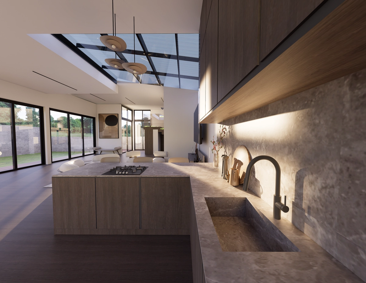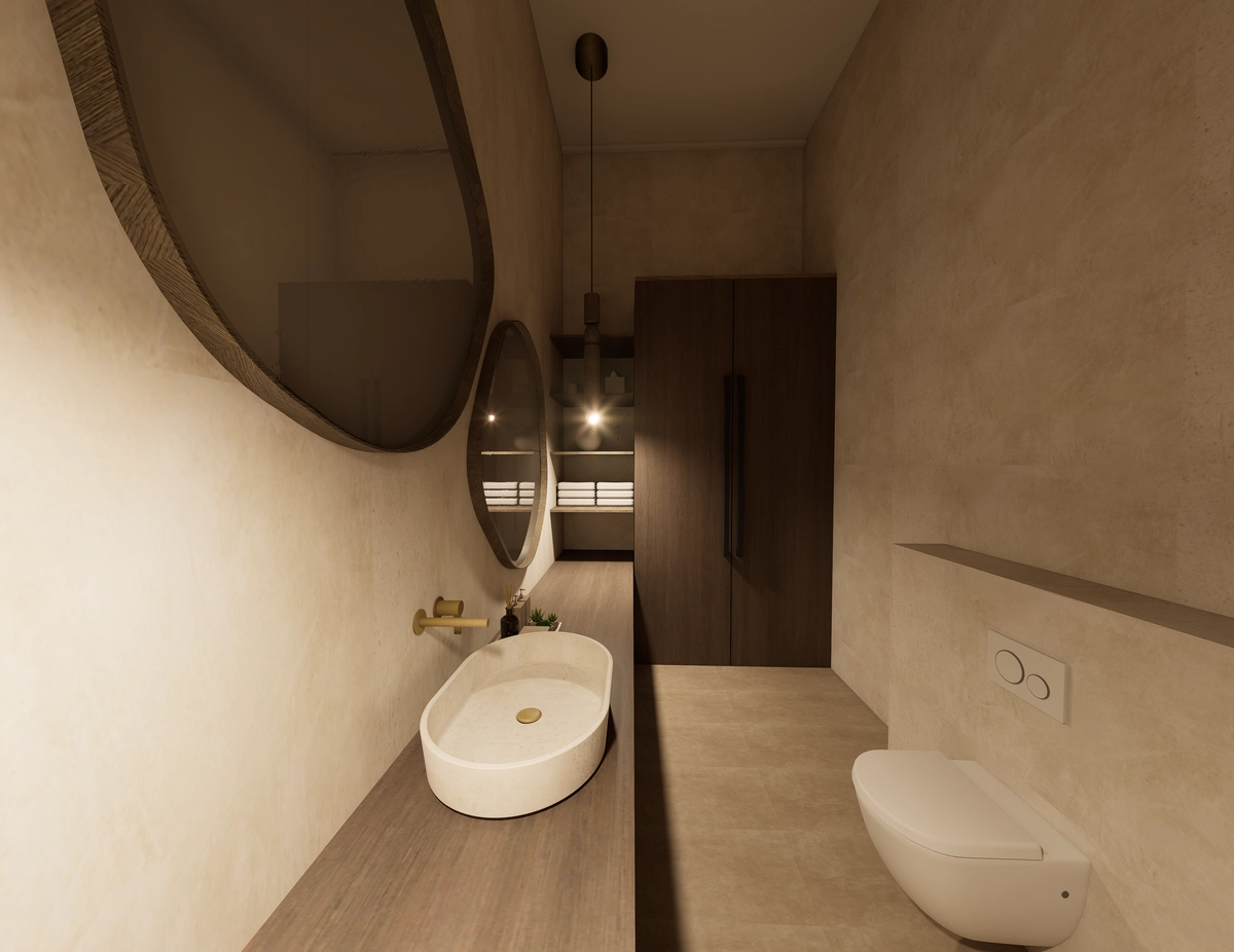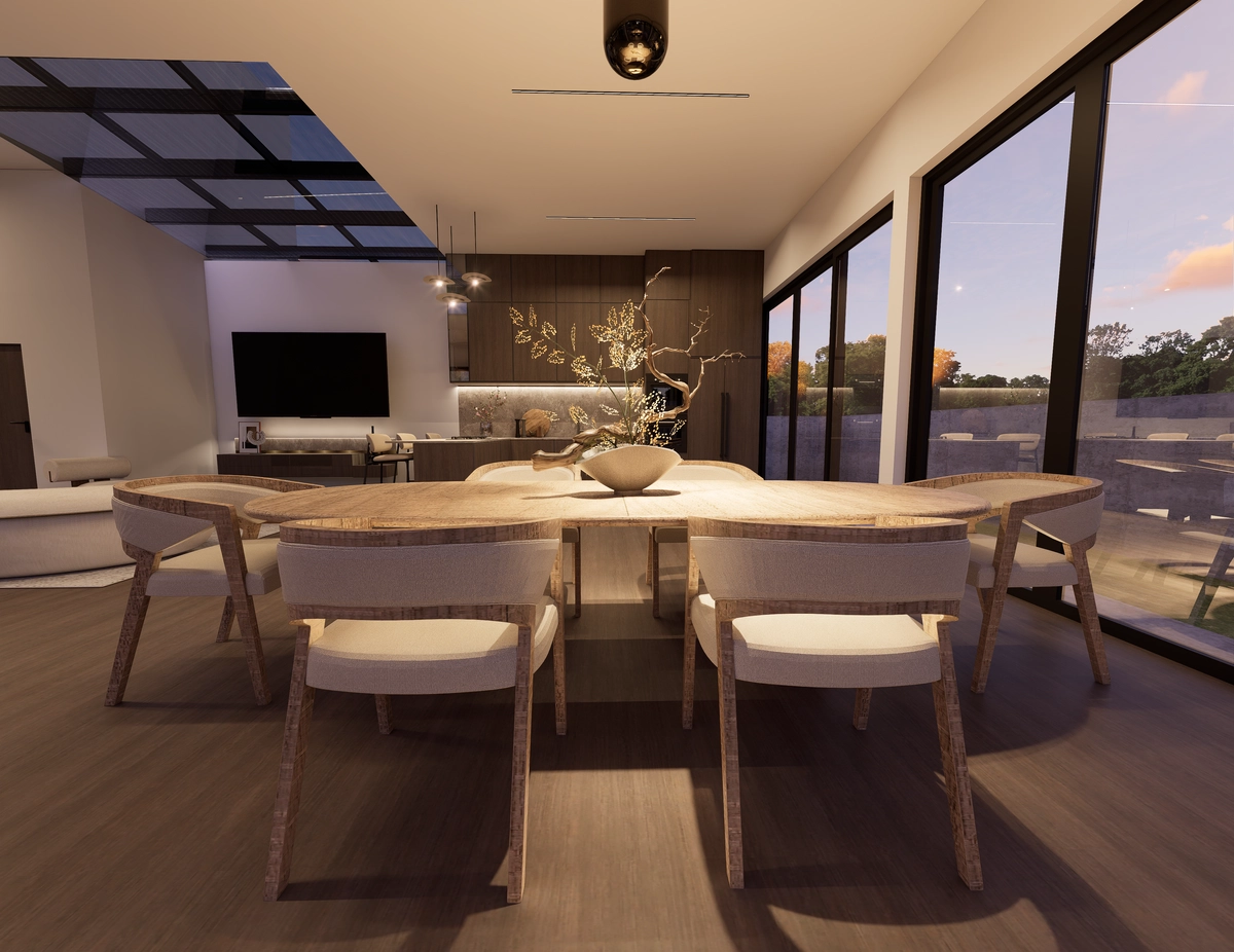 U ovom projektu prigrlili smo japandi filozofijju života - otvoreni koncept koji spaja kuhinju, blagovaonicu i dnevni boravak, stvarajući fluidnost u prostoru, idealnu za druženje i svakodnevni život.