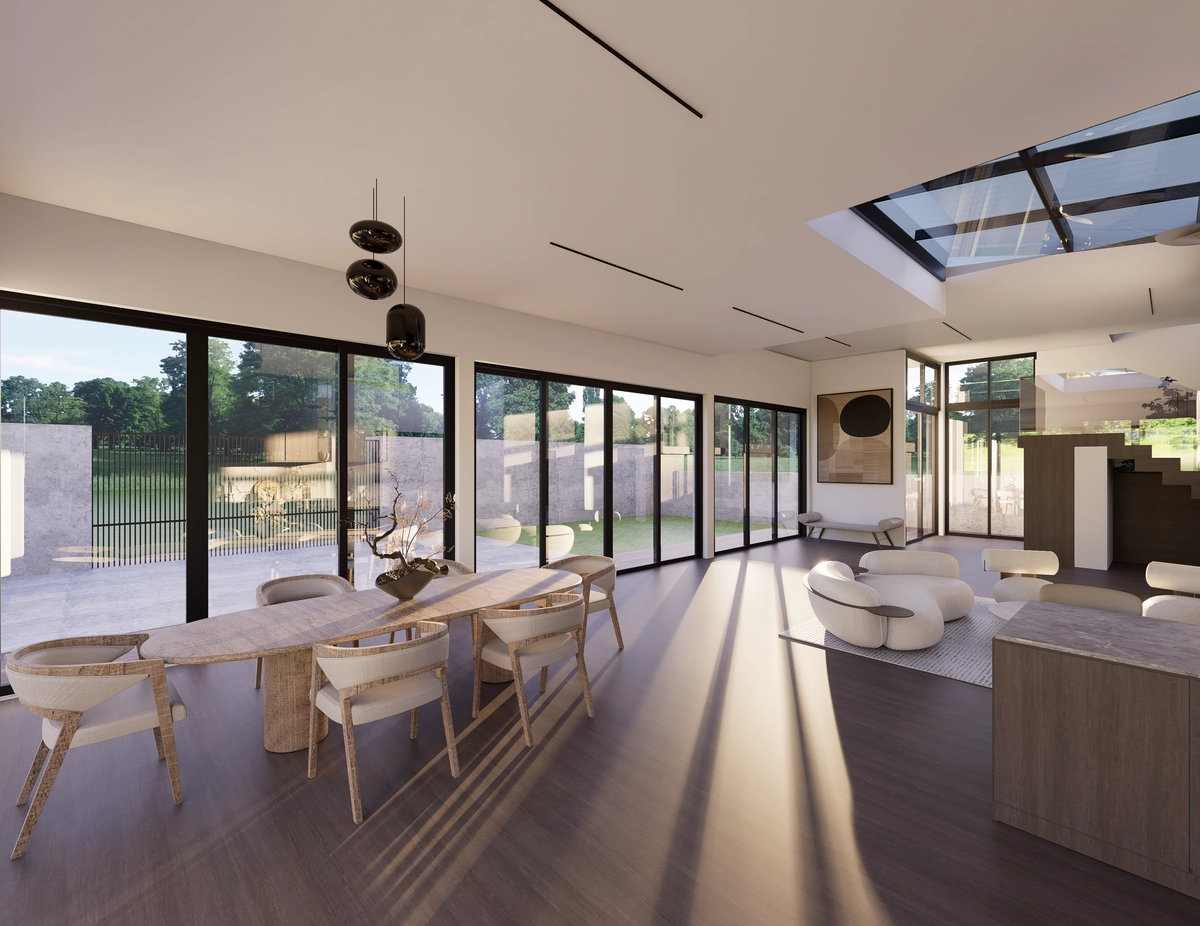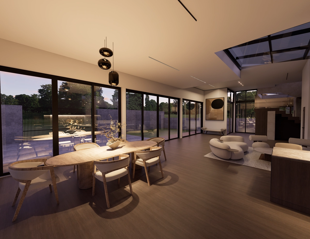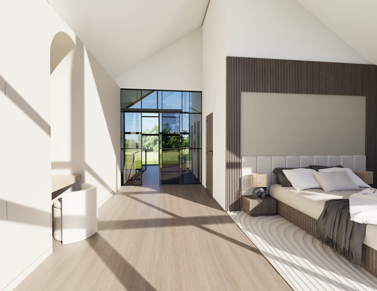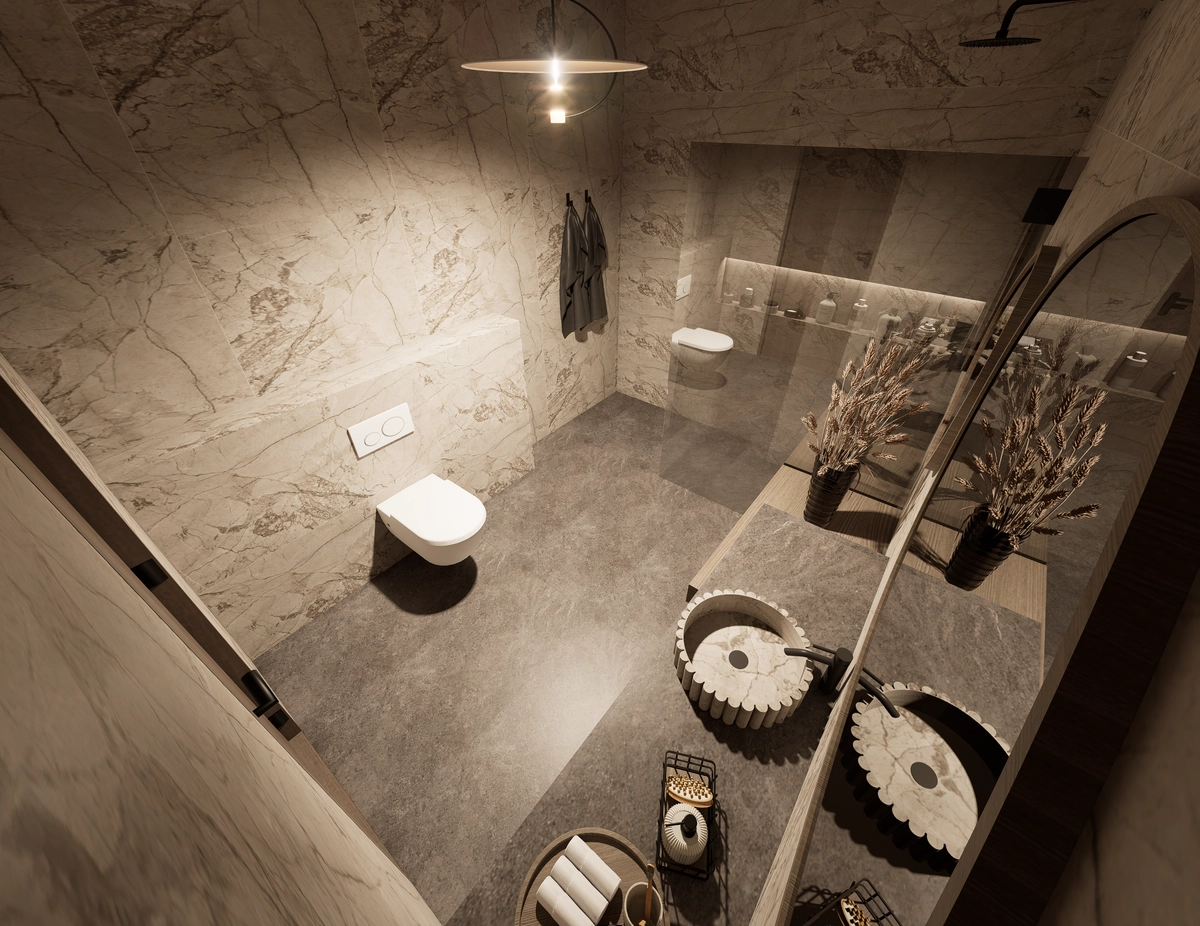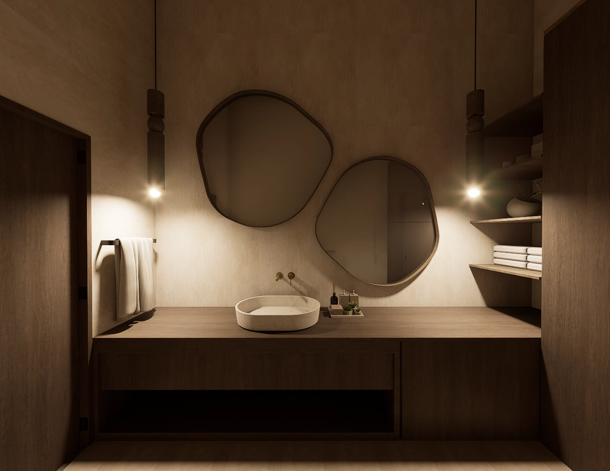 Dekor drva se kontinuirano proteže kroz svaku prostoriju i kroz svaki oblik - kao podne i zidne obloge, dekor namještaja i kao zidni paneli, na taj način stvarajući savršenu simbiozu između različitih životnih zona. Mnoštvo prirodne rasvjete kroz otvore punih visina dodatno doprinosi osjećaju čistoće i prozračnosti.